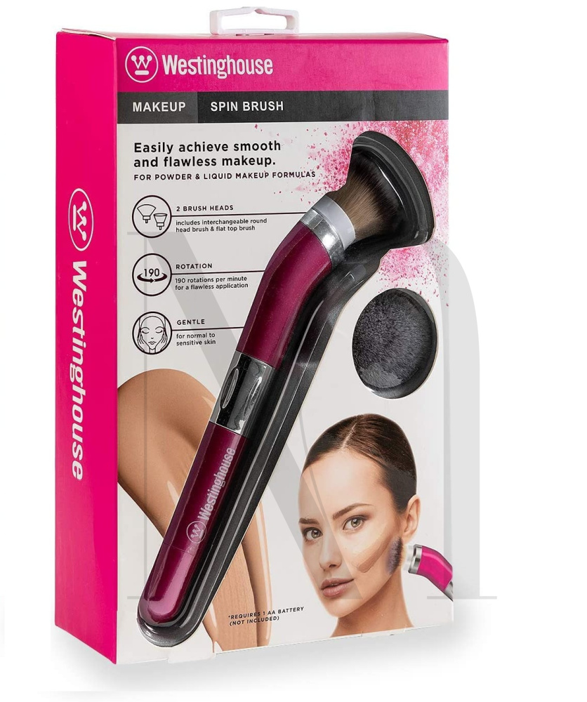 • Electric Makeup Spin Brush perfect for iconic Make-up, massage and anti-aging benefits• Quick and easy make-up with 24,000 macro movement• 360° Rotary Brush for Flawless Make-up application• Comfortable and ergonomic Design• 2 detachable soft fiber bristles Brush heads for different make-up application• Powered by 1 AA battery (not included)• Accessories Include are power make up spin Brush, Flat Brush head and Round brush head"• Product dimension: 23.6 x 15.2 x 6.3 cm