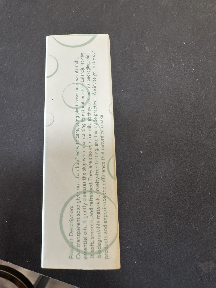 Helena Glycerin Soap (Lavender)Description:Our transparent soap glycerin is handcrafted with care, using plant-based ingredients and essential oils. It gently cleanses the skin while maintaining its natural moisture balance, leaving it soft, smooth, and refreshed. They are also eco-friendly, as they use minimal packaging and biodegradable materials, cruelty-free testing, and fair-trade practices. We invite you to try our products and experience the difference that nature can makeIngredients:Distilled water, vegetable glycerin, sorbitol, salts, sugar, Naoh, coconut oil, Castor oil, stearic acid, ethanol 95, essentials oilsHow to Use:Lather between hands or on sponge,apply to skin, then rinse Thoroughly.For external use only. Avoid contact with eyesStorage:Keep in dry, cool place away from direct sunlightNATURAL 100%