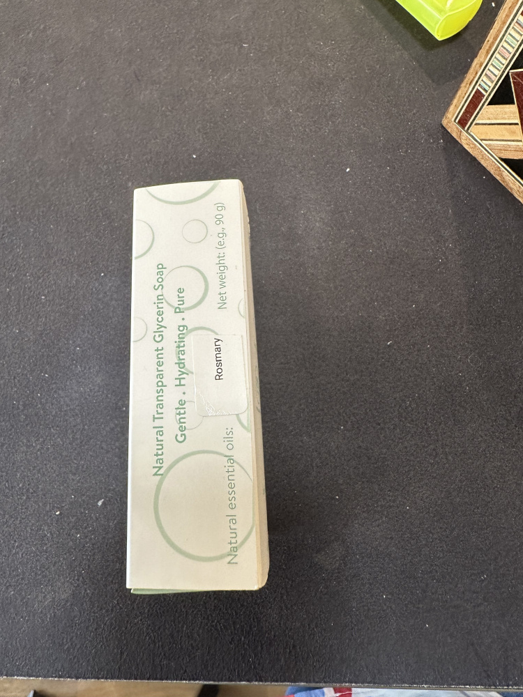 Helena Glycerin Soap (RoseMary)Description:Our transparent soap glycerin is handcrafted with care, using plant-based ingredients and essential oils. It gently cleanses the skin while maintaining its natural moisture balance, leaving it soft, smooth, and refreshed. They are also eco-friendly, as they use minimal packaging and biodegradable materials, cruelty-free testing, and fair-trade practices. We invite you to try our products and experience the difference that nature can makeIngredients:Distilled water, vegetable glycerin, sorbitol, salts, sugar, Naoh, coconut oil, Castor oil, stearic acid, ethanol 95, essentials oilsHow to Use:Lather between hands or on sponge, apply to skin, then rinse Thoroughly.For external use only. Avoid contact with eyes Storage:Keep in dry, cool place away from direct sunlightFOR ALL SKIN TYPE100%NATURAL