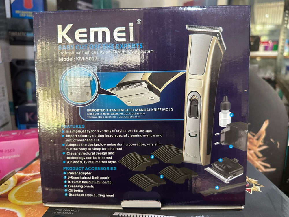 kemei km-5017 rechargeable trimmer smooth touch runtime: 60 min trimmer for men brand :kemei model number :kemei km-5017 rechargeable trimmer smooth touch type :cordless blade material :stainless steel color :multicolor trimming range :1