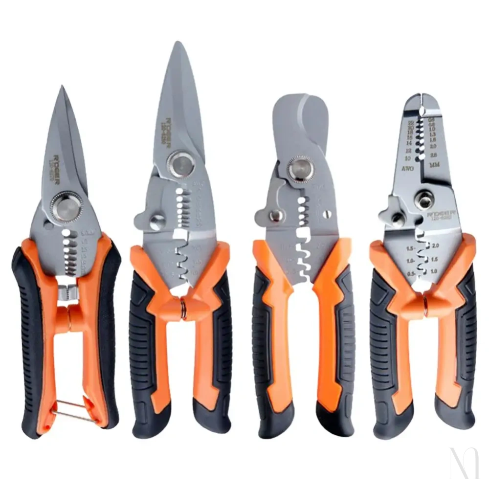 Features:1. The shear body is made of high-quality stainless steel, with the overall heat treatment process and the hardness up to HRC55.2. The design of curved blade at the front end of the cutting body, the cable stripping, free cutting and easy to use.3. The cutting edge at the front end of the shear body is designed with sawtooth, which can effectively prevent the material from sliding or shifting when cutting, making the cutting smoother.4. Precise design of stripping hole and cutting edge in the middle section of the shear body, professional molding tool milling, precise aperture, neat cut in the skin when stripping, and not easy to damage the core.5. High precision die design at the end of the cutting body, precise pressing, no damage to the end of the line, no waste of the end, and the last end of the clamping tooth design, make the line pressing, clamping more solid and reliable.6. Widely used in electronic components assembly, maintenance, telecommunications industry, power line cutting, garden twig cutting, screen and leather cutting, DIY home, etc.7. The cutting edge of wire stripping pliers is sharp, convenient and fast for stripping and cutting.Specifications:Material: stainless steelSpecification:120-6270:156g, 175mm/6.89"120-6280:250g, 200mm/7.87"120-6281:217g, 175mm/6.89"120-6282:196g, 175mm/6.89"
