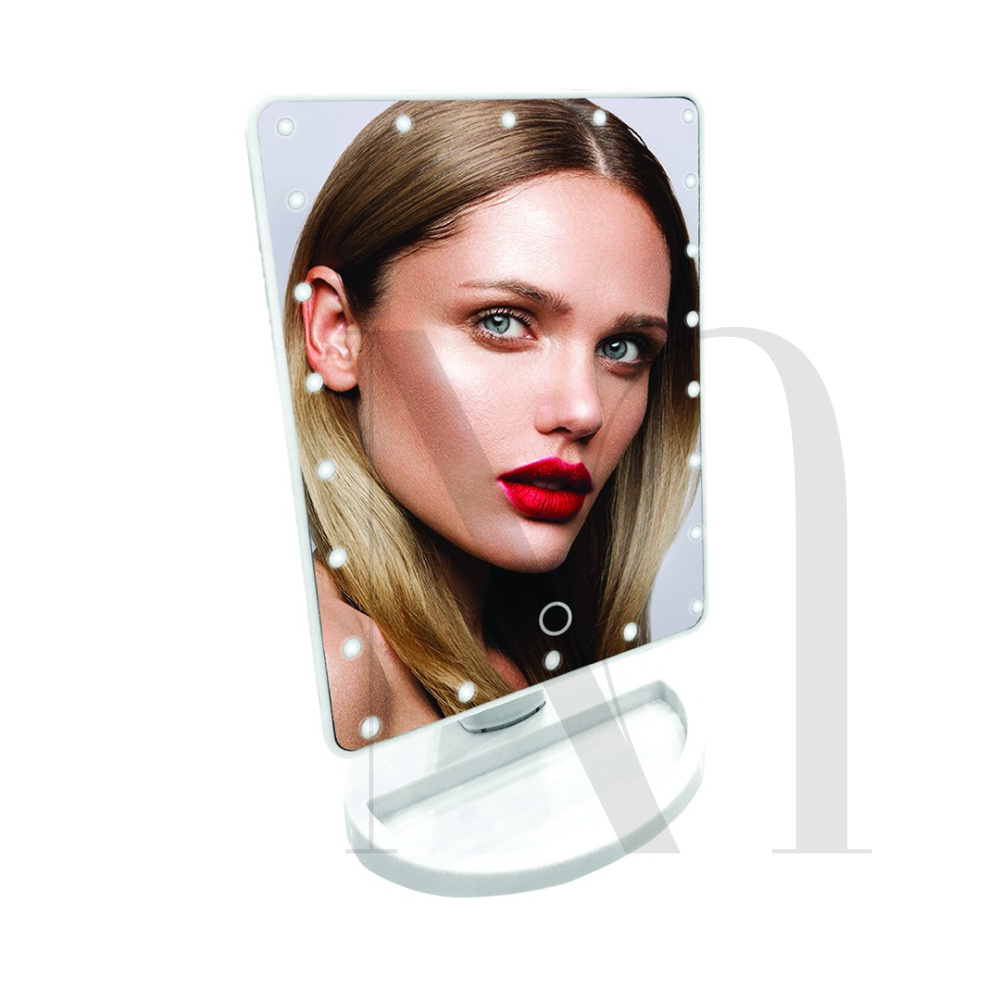 • Westinghouse LED beauty mirror is a perfect gift for beauty lovers• Combined with 360• rotating swivel design for a flawless makeup• Built in adjustable 22pcs dimmable LED lights to choose your preferred brightness• Touch screen with numerous illumination levels• Built in Convenient tray for cosmetics or jewelry• Built in ON/OFF switch• Power Supply Battery AA x 4 (not included)• Color: White