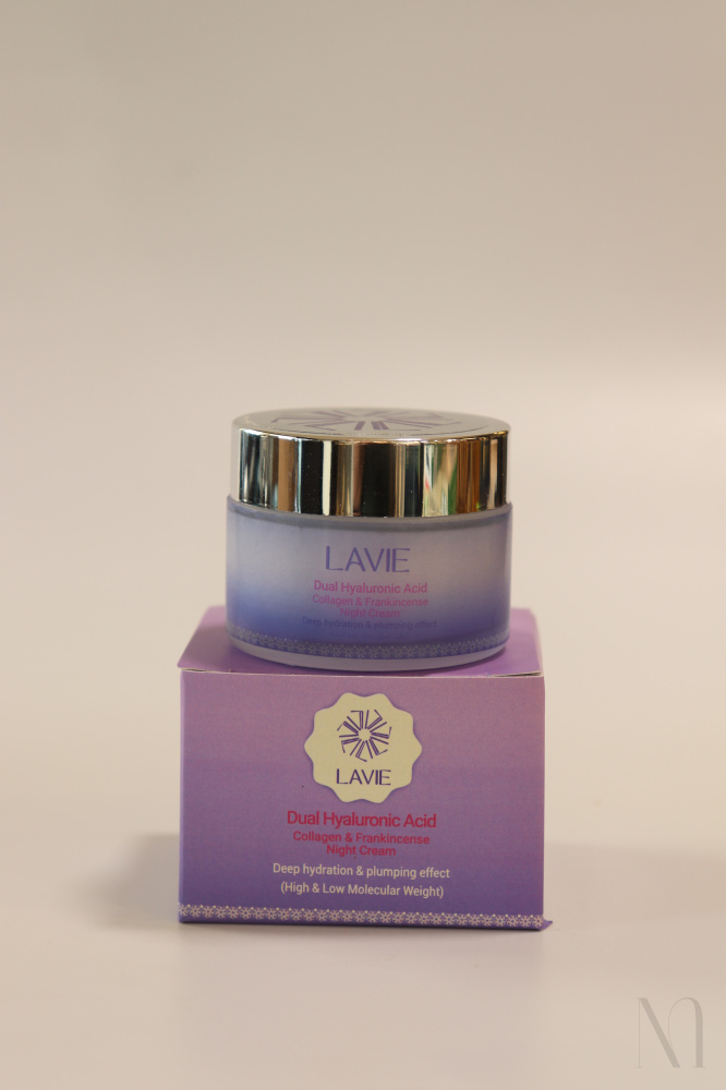 Dual Hyaluronic Acid Collagen&Frankincense Night Cream SPFDescription:Cleanse - Wash your face with a gentle cleanser and pat dry. Apply - Take a small amount of the cream and gently massage it onto your face and neck using upward motions.Absorption - Allow the cream to be fully absorbed into the skin before applying any other products.Storage - Store in a cool, dry place away from direct sunlight.التنظيف - اغسل وجهك بغسول لطيف وجففيه برفق التطبيق - خذي كمية صغيرة من الكريم ودلكيها بلطف على الوجه والرقبة بحركات تصاعدية الامتصاص - اترك الكريم لتمتصه البشرة بالكامل قبل وضع أي منتجات أخرىالتخزين - يُحفظ في مكان بارد وجاف بعيدًا عن أشعة الشمس المباشرة