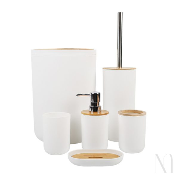 • Transform your bathroom into a luxury space with our 6pcs Bamboo Plastic Bathroom Accessories Set. Designed with a perfect blend of elegance and practicality, this set includes everything you need for an organized, modern bathroom