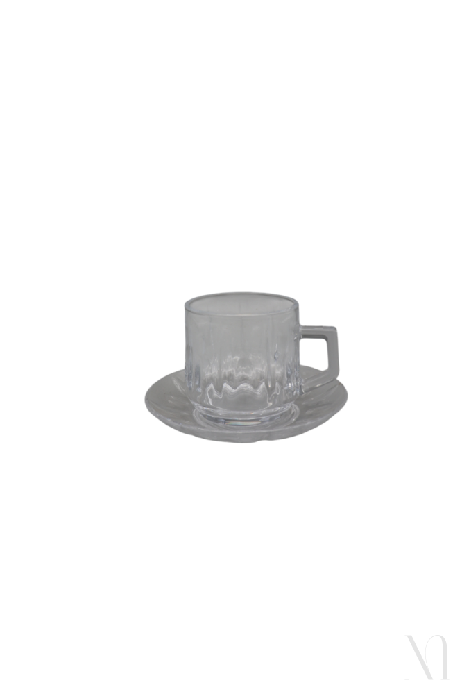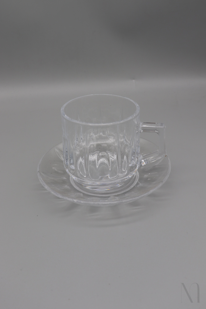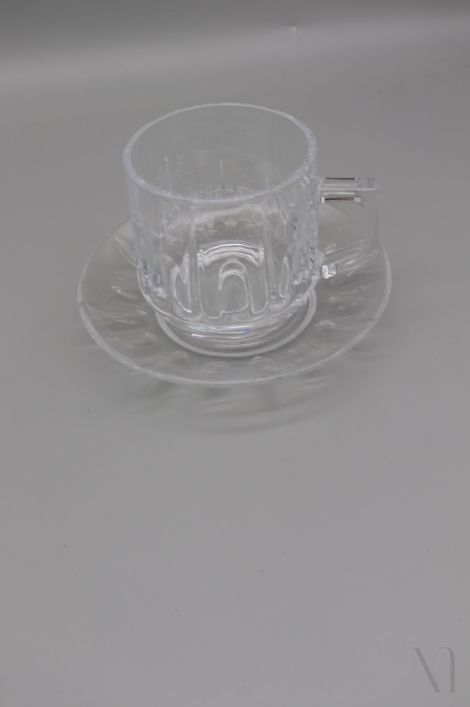 A lovely set of clear glass cups and matching saucers. This lovely little set is fantastic condition. These would be perfect for coffee, punch or cocktails. I love the shape of these, a really fun little set