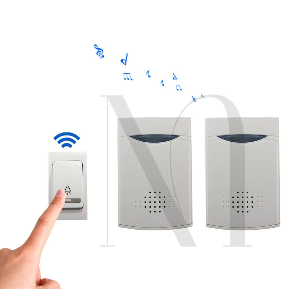 • 38 Different ringtones• Auto melody• 1 transmitter, 2 receivers• Remote distance : 120m• Power Supply Receiver Battery AA x 4 (not included), Emitter Battery 23A 12 Volt (included)